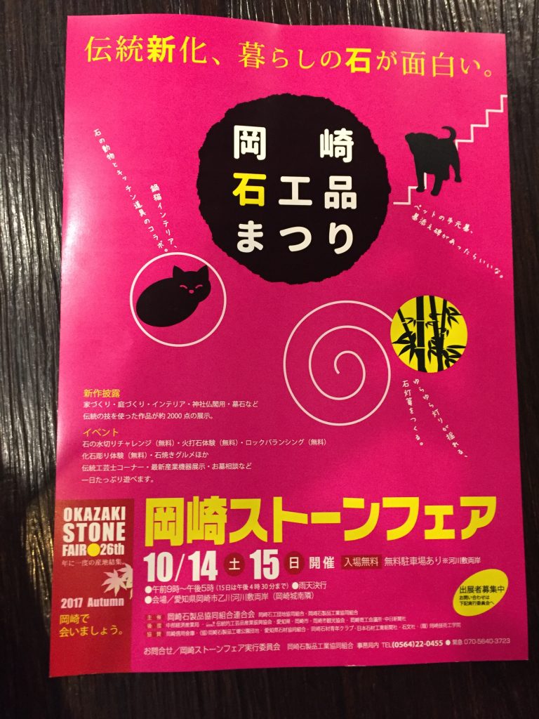 第26回・岡崎ストーンフェア 事務局 2017年9月10日 イベントのお知らせ 第26回・岡崎ストーンフェア 日時:10/14(土)15(日)9:00-17:00 会場:愛知県岡崎市乙川河川敷両岸 共有: クリックして X で共有 (新しいウィンドウで開きます) X Facebook で共有するにはクリックしてください (新しいウィンドウで開きます) Facebook クリックして友達にメールでリンクを送信 (新しいウィンドウで開きます) メールアドレス 投稿ナビゲーション 前 前の投稿: 石花びあVol.5次 次の投稿: ヨコハマきのこ大祭2017